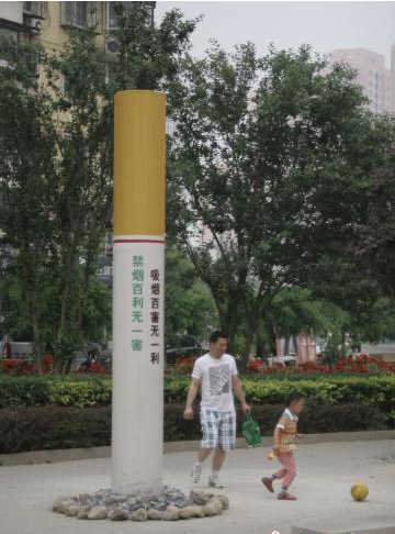 一座高4米、直径0.5米的“掐灭的香烟”雕塑在天津一社区落成。据该作者介绍,制作此尊雕塑想提示人们时刻关注烟草带给健康的危害,及早戒断吸烟。
