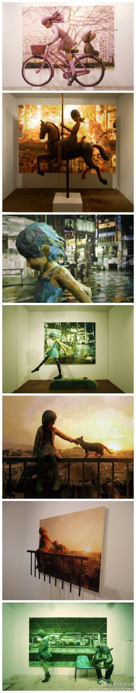 【奇闻趣事】既像油画又像雕塑的艺术作品童鞋们看过吗?来自日本的艺术家大畑伸太郎以日常生活为创作题材,将雕塑置于油画之前,创造出介于二维与三维之间的艺术作品,参观者从不同角度观看会产生不同的视觉效果哦。