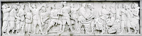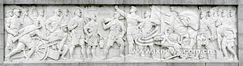 沃祖全说,最终确定塔座东面镶嵌的浮雕主题是“宣布起义”,南面是“攻打敌营”,西面是“欢迎胜利”,随后便向全国征集浮雕创作作品。