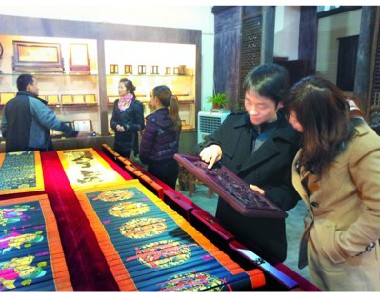 11月30日黄山徽州雕刻博物馆正式对外开放,图为几名游客在参观展品。