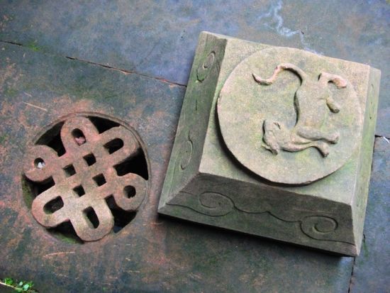 石雕雕刻设计手法多种多样,可以分为浮雕,圆雕,沉雕,影雕,镂雕,透雕。笔者在汪山图库所拍摄的下水口石盖多为浮雕和圆雕。雕刻图案以十二生肖、寓意“福禄寿喜”的蝙蝠、鹿、桃以及辟邪镇宅的“貔貅”等为主。