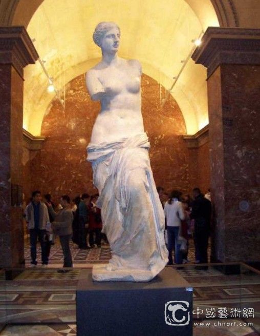 维纳斯雕像为大理石圆雕,高2.04米,1820年在爱琴海米洛斯岛的山洞中发现,现藏于法国卢浮宫博物馆。雕像高贵端庄,其丰满的胸脯、浑圆的双肩、柔韧的腰肢,呈现出一种成熟的女性美。人体的结构和动态富于变化却又含蓄微妙,体现了内在生命力和精神智慧,在风格上接近公元前四世纪古典主义盛期的作品,为希腊时期所罕见。