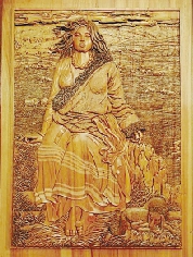 在西藏、内蒙古深刻体验当地居民原汁原味的生活状态后,他将油画风格融入到木雕中,做出了木雕作品《祥》,酷似一幅油画;