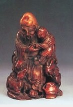 笔者日常书桌上摆放一个旧竹刻笔筒和一尊旧竹雕和合二仙像,皆无任何刻款,但鉴证为明末期间无名氏兴之所至作品,历来给我一些闲情逸趣。附图为另一位藏家珍藏之晚明竹雕寿星公坐像(高约十八公分),也是无刻款佚名之作;但可见出自高人所雕,触手成趣,深得神韵。