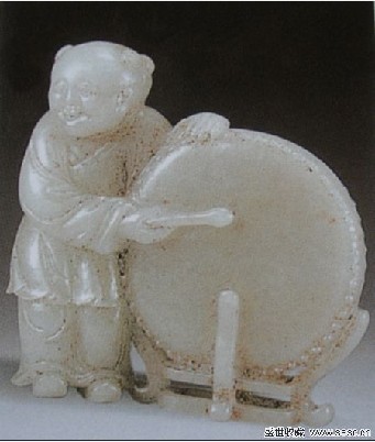 清白玉击鼓童子 高7.2(引自《古董速查手册-玉器》)
