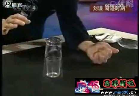 伴着紧张神秘的音乐,刘谦的双手就在杯子旁边“施法”,所有观众都紧盯着大屏幕,目不转睛。cdN-wWw.2586.wANG然而过去了一分多钟,杯中水仍然没有丝毫变化,董卿按捺不住了,“你这是在干什么呀?”接着刘谦两手一摊,“失败了,幸好今天不是正式演出!”紧接着他又开始表演其他的魔术来转移大家的注意力。