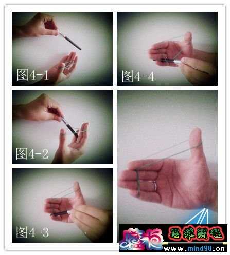 好了!我是怎么知道它的正确门子的呢!?不才啊,是当时一位魔友教给我的,可它的原理却果真是绳圈的原理。所以,有时虽然它看上去是一个新的魔术,但原理可能是你之前所知道的某种魔术原理的演变。