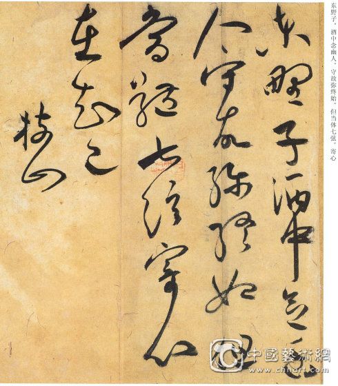 2、箜篌引:祝允明草书成就的最杰出代表。书于明嘉靖四年(1525)前后,共书《箜篌引》、《美女篇》、《白马篇》、《名都篇》等四首三国魏国文学家曹植乐府诗。全卷是祝允明在一个冬日的烈风下所作,但仍然能达到神融笔畅的境界,挥笔迅疾,纵横使转如意。作品狂而不乱,情浓势足,激跃奔发,气度不凡。保证大草气度的第一因素,即将字中妍媸和巧丽的笔画起收动作幅度缩短,增加行笔过程中饱满度和厚实感。使人视觉上既感到朴拙、沉劲而又不失流丽多姿。祝允明在这一卷后自识“神在千五百年前”,可以知道他意在追摹汉人。