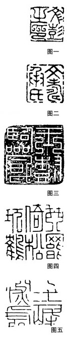 图一、“文彭之印”,印中的“文”、“彭”都有三撇,以其长短不同,连与不连,使形势略异。“印”字中的三钩,由圆朱文发展出来的。经此一用,后世篆刻家多加仿效。