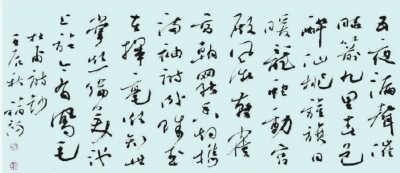 约放适度。飘逸飞动而法度俱在,点画雄劲而不涉怒张,结体宽博而设置精到,任意挥洒而未见波磔,如书刘禹锡《陋室铭》等作。书法史上常有这样的情况,约者失之拘敛,放者流于弥漫。项穆讥黄鲁直“伸手挂脚,体格扫地”。语或过于严苛,至今人,绝多此弊。福初驾驭从容,往来映带,收放之间,甚得米海岳“无往不收,无垂不缩”之意,所以逸而能雄,朗而甚健。