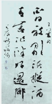 书法艺术这条道路,是条狭小而拥挤的道路。几千年来,就这么些点画符号,被历朝贤智颠来倒去地发挥组合,什么法儿不被玩尽?什么手段不曾使绝?老祖宗留给儿孙们的地盘有多大,在哪里?这是大大值得当代书家们思考的事。况且,自东汉赵壹作“非草书”向书法家发难始,历朝智圣无不被人诉詈,虽崇高如王右军、颜鲁公亦不能免。前者被斥为“卑下、献媚”,后者被讥为“田舍汉、厚皮馒头”。可见作书之难。如何发微掘隐,振颓兴衰,再造历史高峰,自然有待当世诸贤的卓识与努力。福初无疑是个中将才,其书其论,已足令书坛刮目。我仔细读过他1997年出的专集与其后的甚多作品,深感其书法成就已远非其年龄可论,并且有了较为鲜明的个人风格,大致可归纳为以下三个方面: