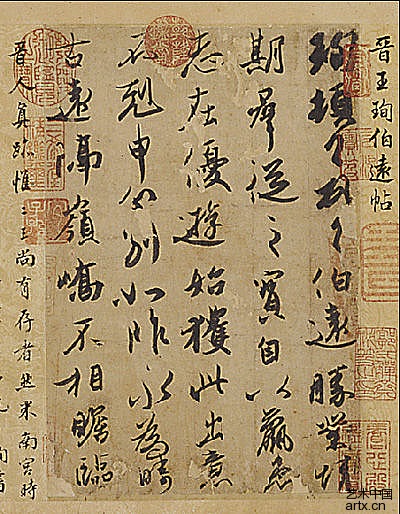 晋王珣《伯远帖》(手卷全貌) 王珣《伯远帖》,同王羲之《快雪时晴帖》、王献之《中秋帖》被乾隆皇帝定为清内府藏历代法书中的“三希”。但“三希”中,《快雪》是唐摹,《中秋》为米临,只有《伯远帖》是真迹,而且也是东晋唯一的名家法书真迹。所以,其艺术的、文物的价值,绝非其他法帖能同日而语。启功先生当年“尝于日光之下映而观之”,验证其为真迹而非摹本,遂作诗一首:“王帖惟余伯远真,非摹是写最精神。临窗映日分明见,转折毫芒墨若新。” 王珣(350-401年),字元琳,小字法护,琅玡临沂(今山东临沂)人,出身名门望族,是王导孙,王洽子,王羲之族侄。王珣受封东亭侯,转大司马参军,累官辅国将军、吴国内史、尚书令、散骑常侍等,卒谥“献穆”。Cdn-wwW.2586.Wang他富于才学,雅好典籍,以词翰著称,深受晋孝武帝司马曜重用。尝梦人以如椽大笔相赠,醒后自忖“此当有大手笔事”,不久,皇帝崩逝,哀册谥议皆为王珣草拟,后世所谓“大手笔”者即由此而来。时人桓玄曾赞王珣“神情朗悟,经史明彻,风流之美,公私所寄”。 王珣于书法更可谓家范世学。东晋崇尚书法的风气异常浓郁,王氏一门更是书家辈出。王氏书家中,羲、献是创新,元琳为守法。以《伯远帖》同羲之早年的《姨母帖》相较,便可知其与钟繇、张芝的一脉相承。 《伯远帖》是一封问候友人的书信:“珣顿首顿首。伯远胜业情期,群从之宝。自以羸患,志在优游;始获此出,意不剋申,分别如昨,永为畴古。远隔岭峤,不相瞻临。”短短5行47个字,表达了对友人病况的担忧,和与友人天各一方的怅惘。此帖结体疏朗,笔顺天成,寓雄强于率意之中,瘦劲古秀,董其昌称其为“洒洒古淡”,与羲之、献之新体区别明显。其用笔的使转顿挫精微之处,是摹本和刻帖难以做到的。 乾隆十一年(1746年),《伯远帖》入藏内府,乾隆皇帝在帖上题识,表达欣喜之情:“唐人真迹已不可多得,况晋人耶!内府所藏右军《快雪帖》,大令《中秋帖》,皆希世之珍。今又得王珣此幅茧纸,家风信堪并美!几余清赏,亦临池一助也。”遂与王羲之《快雪时晴帖》、王献之《中秋帖》并称“三希”,贮藏于养心殿西暖阁中,称之谓“三希堂”。十二年,又敕命梁诗正、蒋溥等人精选内府所藏魏晋至明代书法,包括“三希”在内,摹勒上石,名为《三希堂法帖》,并于北海建阅古楼,将刻石嵌于楼内墙上,拓本流传以示临池之模范。 文物聚散,从来同国运兴衰紧密相连,随着末代皇帝溥仪出宫,《伯远帖》与《中秋帖》被“敬懿皇贵妃”即同治皇帝遗妃携出,后辗转卖给了郭葆昌。1949年,其子郭昭俊将二帖抵押给香港一教会,后无力赎回。1951年10月,时任文物局副局长的王冶秋得知此消息,嘱故宫博物院院长马衡立即致函中央人民政府。此年冬,新中国在百废待兴之际,以重金将二帖收回,珍稀国宝,重归故宫。