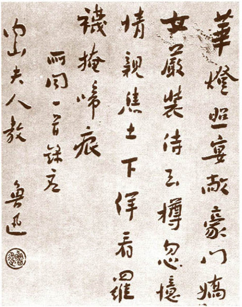鲁迅从小喜欢书法,他的胞弟周作人在一篇文章中回忆,老大好集字帖,但把本揣摩的时候多,照本临摹的辰光少,但他却写得一手好字,好像不是特意为练而练,而是长期坚持用毛笔用心书写,即使西来的钢笔已风靡一时。长期用毛笔写字者众矣,如现在的一些书法家,据说凡书写基本上都用毛笔,以示与众不同,但不见得他们有鲁迅那样不同凡响的书法成就。