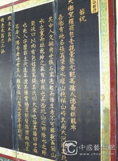 据武威市文史专家李林山介绍,《德寿称觞序》叙述凉州包氏家族的渊源,文辞典雅。书法是乾嘉时期典型的欧柳体,清丽婉妙。该书法屏风补充了《清奉国将军唐公墓志》的缺漏,丰富了清代凉州籍名人唐文瀚的史料。唐文瀚,字西园,武进士出身,系唐希顺玄孙,祖父唐如松赐武翼大夫(唐如松为四川提督、唐希顺之子唐际盛侄子);其伯父唐殿杰、父唐殿英均赐宣武大夫。乾隆五十五年(1790年),入疆任乌什屯政,厉行军屯,使屯区内“草莱关(广)集”,为镇压西北反叛势力提供了充足的后勤保障。嘉庆元年(1796年),入朝拜见嘉庆帝,授“西安军标中军副将”,从三品。cDn-www.2586.waNG陕西戍守期间,唐文瀚在宝鸡等地追剿叛军,“圣旨记功一次”。后来在五浪关剿匪时,“积疴成疾”,朝廷宣尉,调往新疆任“西域将军”(正二品),逝于任上,赠封“奉国将军”。