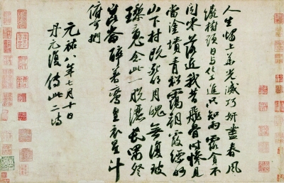 《太白仙诗卷》是苏轼最不顾及笔法、字法、章法,最率意而为的作品,但书家的性情、学养、功夫都在其中得到了完美的呈现,这真是“无意于佳乃佳”了。“宋尚意”,实际上是宋代文人士大夫对于更高艺术境界的追求,它要求书家在人格、学问和技巧上都要具备很高的修养,然后在一种率真的状态下去实现自由的书写,“出新意于法度之中,寄妙理于豪放之外”,这是将书法艺术提升到了一个更高的精神层面和文化层面。《太白仙诗卷》正是为“尚意”书风作出了最好的诠释。