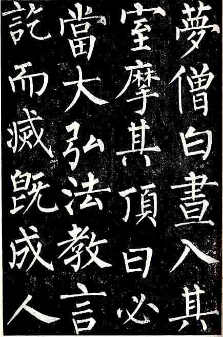 从颜真卿、柳公权的楷书入手是明清书家总结的经验。颜、柳的楷书运笔有明显的提按动作,法度较完善,可以纠正就像写钢笔字那样随手画的毛病。颜体大气、宏伟雄厚,为楷书的正道。柳体瘦劲,笔法特别讲究。明朝书法家董其昌有“自此以往不得舍柳法而趋右军(王羲之)”的经验。明代冯班也说“颜书胜柳书,柳书法却甚备,便初学”。学柳能得骨力,学书以得骨为先。因此我们可在颜真卿和柳公权的楷书代表作中任选一种入手。颜真卿的代表作《颜勤礼碑》,和柳公权的代表作《玄秘塔碑》,是中小学生和初学毛笔字者的人门佳帖。