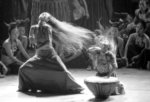 昨晚,杭州大剧院成了杨丽萍“繁衍生息”的舞台,她用新作《云南的响声》将剧院变成了一个超现实世界——堆积如山的巨鼓、整根竹子做出的双人笛、丰收时晒谷子的簸箕、水车、钵盂,充满生命气息的乐器发出天籁之音,风声、水声、鸟儿的欢叫和老虎的悄悄话都在讲述生命的故事。两个多小时的演出,除了中场的休息时间之外,观众几乎目不转睛。