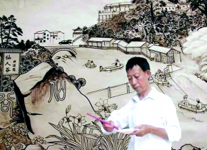 胡正亮介绍,100多年前他的祖父胡林标就酷爱绘画,师从外地民间艺人学会了外墙墙绘技艺,现留存在浮石乡毛德兴家一座老宅中的墙绘画,就出自其祖父之手。他的父亲也擅长美术,在当时农村也算得上是一个比较有声望的乡土艺人。受家庭熏陶,胡正亮从小就对民间美术钟爱有加,16岁便在云溪乡蒋村画了一幅《毛主席去安源》的巨幅壁画,轰动一时。据他介绍,上世纪八十年代他也曾多次参加我市文化部门组织的书画培训,作品也被多次展览。