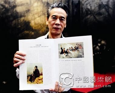 图为:刘柏荣展示载有他画作的图册 记者王永胜摄