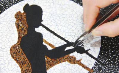用颜色各异、形状不一的破碎蛋壳创作的蛋贴画,既有中国画皴染泼墨的整体效果,又有西方印象画派彩画法的影子,给人带来特别的艺术享受。这是山东枣庄的李安玲的看家手艺。从小爱好美术的她,早在1995年就开始利用自己的绘画基础创作蛋贴画。图为近日李安玲在家中创作蛋贴画的场面。