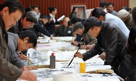山西百名书画家挥毫泼墨“书画救灾” 组图