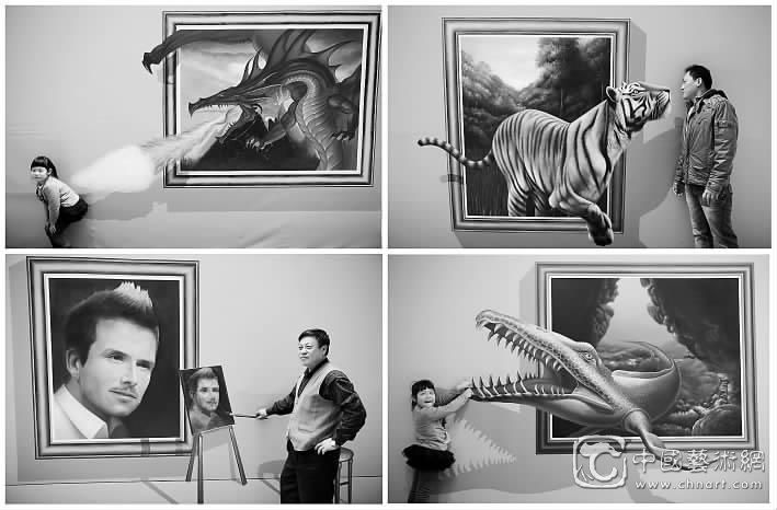 近日,宁夏银川市一家商场展出数十幅以鳄鱼、蓝天、恐龙为背景的3D立体画,吸引许多市民驻足拍照,感受游乐在画中的奇妙视觉之旅。