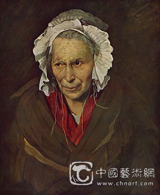 对这些不幸的人,席里柯给予人道的声援,他似乎在此批判一些残酷的说法﹝这些说法认定那些不幸的 人都是金钱、功利、战争、偷窃、妒嫉、战功的牺牲者‥‥‥﹞,于是,席里柯从这幅画的画面中,呈现这个老妇人从害怕的、含混的、畔略抬起的迷惘目光之中, 流露出她正在请求同情和理解的眼神。