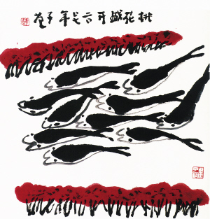 中国水墨画,尤其是花鸟画,基本上是由工写两条腿走着同一条老路,在机制上是封闭的。而崔子范先生的大匠风范,或者说他的贡献就在于他敢于超越自己所崇拜的先贤,创作了属于我们时代风范的“开放性的力度结构系统”,是对古典花鸟体系的一个突破。其特点是:提炼强符号,强化视觉冲击力,通过夸张变形,使黑的更黑、白的更白,把连续排列、重叠铺陈的符号群组合成节奏明快的韵律,使美好的生命力夸张的更为活跃,把美好的东西强调给人们看,使艺术的生命力和无限性得以最本质的表现。这是意象造型和主观的极简主义、符号化形式美的构成图式,具有民族特质的时代精神的艺术理念。有学者是这样形容崔子范的艺术——他是富有现代大写意笔墨情趣、东方装饰构成审美意蕴与新象征主义浪漫情怀风格的绘画大师。此乃一代大师崔子范给世人的永久印记。(崔名芳)