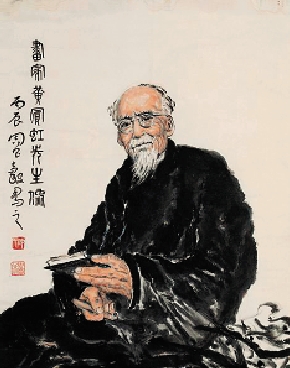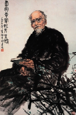 《黄宾虹像》(图3),为周昌谷1959年所创作,人物面、手部用线条和敷以浅绛来表现,衣服则是用破墨、焦墨等丰富墨法参以线条来表现,把中国传统的用笔用墨表现得更为充分和淋漓。同时也是对大师所倡导的“内美”和团团浓墨一扫四王以来的萎靡因袭画风胆魄的崇敬。周昌谷(1929—1985)号老谷。浙江乐清人。自幼喜爱诗文书画,1948年考入国立艺术专科学校,毕业后留校任教。历任浙江美术学院教授、中国美术家协会理事、浙江美术家协会副主席等职。周昌谷是现代浙派人物画代表人物之一,对传统笔墨技法深有研究,尝潜心学习八大、石涛、徐青藤、吴昌硕、黄宾虹等人作品,并赴敦煌临摹壁画。又对西方印象派、野兽派色彩亦有所汲取。善于兼容并蓄,融会贯通,将传统花鸟画用笔移植于人物画中,用色和运墨极见匠心。尤其是吸收了西画中自印象派以来的色彩处理方法。如《荔枝香》、《芙蓉花下》、《荷塘一角》、《荷塘牧女》等,满纸敷色,少留空白,画面上是大面积色块的强烈对比,受到林风眠风格十分明显的影响,其用色明艳亮丽、饱满充实,画面给人满眼绚烂流动的色彩。这幅《黄宾虹像》是用中国传统水墨加浅绛来绘成,在画的左上侧有潘天寿的题款:“画家黄宾虹先生像(篆书)一九五九年盧橘黄时,寿题”,钦白文“潘天寿印”。右下脚作者自题“周昌谷作”,钦朱文“周”印。在周昌谷人物画创作中,用传统笔墨创作而且请潘天寿先生为其作品题款的好象仅此一件,足以说明这件作品是周昌谷的得意之作,也是受到潘天寿赏识的画作。2006年上海华星拍卖有限公司秋季拍卖会上,把类似画面的周昌谷《黄宾虹像》(图4)以估价6,000元-8,000元上拍。两幅对比:一是画面造型和笔墨风格基本相同,均采用水墨加浅绛为之,拍卖的作品(图4)局部有省略,造型的用笔用墨技法不如前者。二是题跋有差异,(图4)拍卖的题跋是:“画家黄宾虹先生像(篆书),丙辰(1976年)周昌谷写之”,钤印白文“神州”、朱文“周昌谷印”。这显然与前者有较大出入,且水平也要次之,应该是他人临摹周昌谷1959年所创作的《黄宾虹像》;三是书法差异,(图4)拍卖的所题“周昌谷写之”几个字,显然笔力甚软,均未达到周昌谷书法的高度。