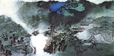 之二:张大千的艺术成就是否奠基于敦煌? 自1940年张大千敦煌面壁以来,每一提起敦煌艺术,必连带思及张大千,似乎他便是敦煌的代表。同时,张大千的画风是否大受敦煌影响也引起争议。有人认为张大千的艺术创作与敦煌面壁的关系不大,只是好事者的牵强附会而已。况且,张大千仅在敦煌呆了两年六个月,而其后的一些艺术家或研究者,连续面壁一二十年的大有人在,因此,张大千在敦煌所得之收获与成就实属有限。 敦煌真的深深影响了张大千的画风发展吗?笔者的答案则是肯定的,甚至认为假如没有敦煌之行,中国绘画史上是否仍有“张大千”存在殆成问题。原因是由中国自宋元以后文人画兴起,画风盛行水墨秀润一路,隋唐北魏时精丽浓艳、工整繁密之表现几已完全式微,明清两代更是如此。张大千的画风早年由明末清初四僧入手,取法的范围亦多在元明以降之笔墨表现。而当他远涉敦煌见到隋唐以前那种雄伟精丽、场面壮观的表现与色彩,那种专业画家的执着与奉献的精神,洋溢着生命的光辉与热力的壁画,绝非“潇洒飘逸”的文人画风可比拟。这使他深受震撼与感动,洞悟了艺术“法相庄严”的精义。Cdn-wWW.2586.wang由是他坚定了人生创作的“不惑”,无惧于生活环境的恶劣挑战,接受了毅力的考验,循序渐进,绝无取巧地表现了与古人一样对艺术执着与虔诚的态度。自此,他拓宽文人纤秀之笔,而入高古精辟之境,这是他在精神层面的提升。 在绘画的影响上,他恢复了古人高妙的敷染描写技法,除了高古的线条勾勒外,精研古人的重彩设色法,重新振兴中国画业已失去久远的色彩生命。他真正大规模临摹古人名迹巨构,却多是在他40岁以后,而不是大家所想象的早年。那种气势雄浑的表现,也只在他盛壮之年,方有“临摹”的功力与见识,这些都出自于敦煌的启发与影响。大多数人在40岁以后即停止学习与增益的弹性,对张大千来说,由于受到敦煌的启示,他却是领悟与学习的开始,同时也是艺术生命的灿烂发挥。大千临摹壁画更是以其深厚之学养体认,来上溯古人之精神技法,绝非仅以皮相着手。倘若认为张氏在敦煌近三年的时间尚不足论而菲其成就,那真是未识其工作之辛苦密集与功力才情之过人。 张大千晚年青绿泼彩之时代新风格,实际上也深受佛教艺术精神的影响。1976年所作的《慈湖图》当可为最佳说明范例:云山苍茫,烟岚轻动,山顶上青绿鲜明的重彩,透显出像蓝绿宝石般炫目瑰丽的视觉效果,宛如佛像项后的圆形背光,深具宗教性极强的象征意义,可谓纳奇幻众生法相之大千世界于山林氤氲中,呈现出庄严高妙的宗教意境。居士画作装饰与形式的特质虽重,但并非唯美华饰的经营,盖求“法相庄严”之境界表现,此多时人所未见。因此居士毕生“大千世界”的艺术创作与发展,皆可谓奠基于敦煌之行的苦修,与之有密不可分的关系。