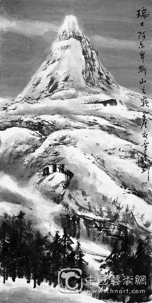 瑞士阿尔卑斯山之巅(国画) 覃志刚