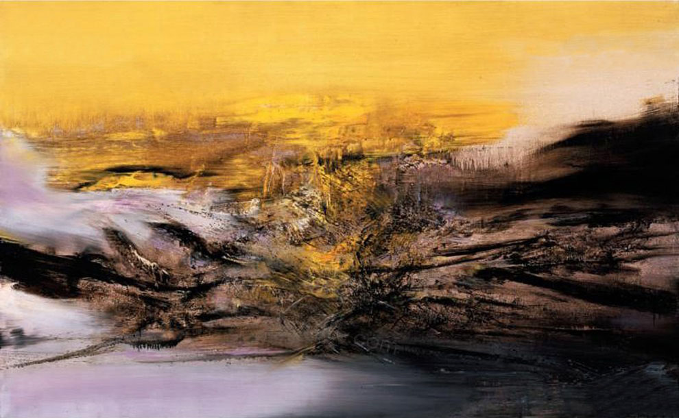 书法,使赵无极自由悬腕运笔。他采用中国画的移动多视点,构成自由的空间关系,表现虚空、宁静与和谐,以达到“天人合一”的境界。显然,他摒弃西方古典具象绘画,与注重想象的中国画产生更多共鸣,与此同时,又超越它,走向非具象。