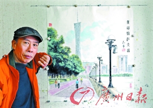 让罗志严萌生绘出新“广州好”百景图的念头。 2011年3月28日,本报刊出“新‘广州好’百景揭晓”图片。三个版的广州风景触动了草根画家罗志严。在过去18个月,他跑遍百个景点,白天实地采风拍照,上网搜集素材,夜晚作画……当积攒的景点素材有七八厘米厚时,罗志严终于在去年12月下旬完成了百幅国画作品。“我想用画笔记录广州发展的脚步。”这位自学绘画数十载的热心读者说。